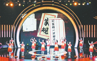舞台上一幕童趣盎然的情景剧,引得全场阵阵欢笑。9岁小男孩攥着礼盒的认真模样,与小女孩父亲的温情说教,生动再现了日常生活中家风教育的细微场景。这一巧妙设计,让“家风”这个看似厚重的词汇,在欢声笑语中变得可感可触,抽象的概念变得鲜活具体,瞬间拉近了与现场观众的距离,也为整场活动奠定了温情而深刻的基调。