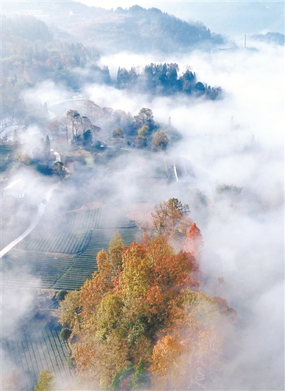 12月1日在湖北省宣恩县珠山镇拍摄的山间一景(无人机照片)。 新华社发 (宋文 摄)