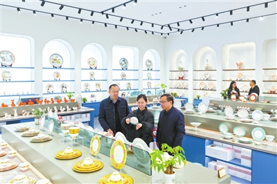 12月5日,上党区八义窑红绿彩博物馆内,游客正在欣赏瓷器。红绿彩瓷作为国家级非物质文化遗产,以其明丽浓艳的色彩、古朴生动的纹样深受消费者青睐。目前,产品已有300多个品种,畅销海内外。