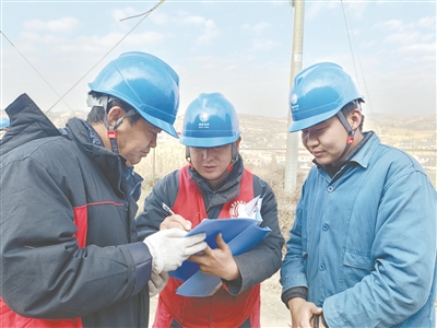 12月10日,国网武乡县供电公司工作人员在蟠龙镇蟠龙花岭儿支线更换老化导线,确保供电线路稳定运行、居民用户温暖过冬。 贾丽钦 摄