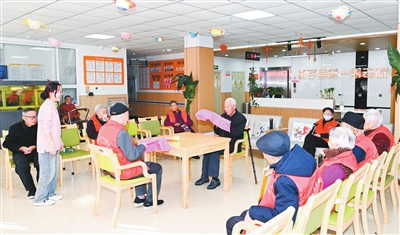 在社区幸福食堂,老人们坐在一起,一边吃饭一边聊天,不时传出欢笑声。“在这里吃饭,便宜、方便、实惠。”老人们开心地说。