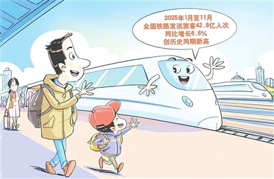 今年1月至11月,全国铁路发送旅客42.8亿人次,同比增长6.6%,创历史同期新高。亮眼的客运数据,是铁路部门以市场化改革和创新服务主动创造需求、激发消费潜力的成果。要使铁路客运持续激发经济活力,需多方协同发力,推动高铁、文旅深度融合,进一步优化交通接驳与商业配套,将交通优势转化为经济动能。