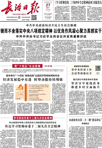 长治日报 要闻 01 2025-12-271 2025年12月27日 星期六