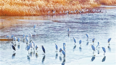 近日,被誉为“太行天池”的漳泽湖国家城市湿地公园内,上千只大白鹭集结栖息。冰面与浅滩间,洁白的身影或静立远眺、或低首觅食,与岸边泛黄的芦苇相映成趣。随着当地生态环境持续改善,这片湿地已成为候鸟迁徙途中的“生态驿站”,冬日里的群鸟翩跹,正是人与自然和谐共生的生动注脚。