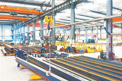 1月10日,位于屯留经济技术开发区的长治市华创钢结构工程有限公司钢结构组装车间内,工人们正在紧张生产。近年来,该公司稳步推进新型复合绿色建筑材料项目,实现了经济效益与社会效益双赢。