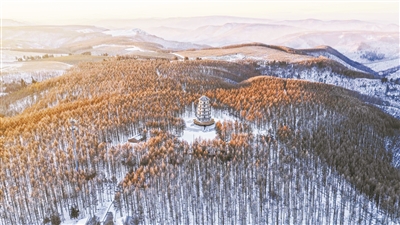 冬日,位于河北省承德市围场满族蒙古族自治县的塞罕坝国家级自然保护区银装素裹,美景如画。
