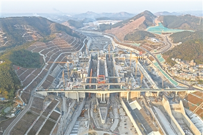 这是广西平陆运河马道枢纽施工现场(1月11日摄,无人机照片)。