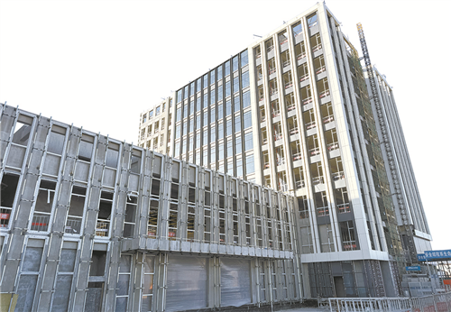 建设一线,长治经开区综合园区配套基础设施建设项目一期正在加紧进行内部装修,建成后将为各产业园配套数字化产业研发楼,同时成为我市首个超低能耗建筑园区。