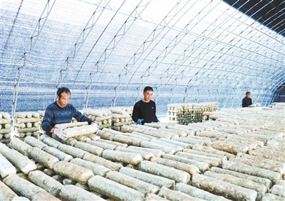 1月23日,上党区西火镇北大掌村旺源种植专业合作社食用菌种植基地内,工人们在整理香菇菌棒。该合作社现已建成养菌棚20座、出菇棚10座,年生产菌棒50余万棒,年产香菇15万斤。小香菇既是带动群众增收致富的“金疙瘩”,更是助力乡村产业振兴的“致富菇”“幸福菇”。