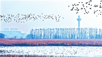 近日,近千只国家二级保护动物花脸鸭在漳泽湖国家城市湿地公园栖息越冬。它们姿态安详,与远处朦胧的山影、近处摇曳的芦苇相映成趣,共同构成一幅宁静和谐的自然画卷。近年来,我市通过实施湿地整治、加强水源保护等措施,持续改善生态环境,为候鸟迁徙提供了重要的中途停歇地与越冬栖息空间。