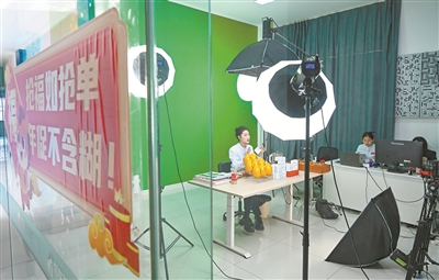 1月23日,在振东健康直播基地,工作人员正在直播间推介产品。该基地以“中医药+”为核心,逐步构建起集选品、直播、培训、运营为一体的电商生态,为区域产业数字化转型与升级注入新动能。