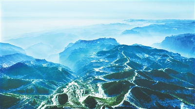 1月30日,雪后的太行山银装素裹、群峰纵横、云雾升腾。梯田的素雅线条与松林的玲珑雪挂相映,构成一幅清雅静谧的水墨画卷。