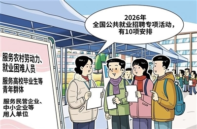 人力资源和社会保障部近日印发通知,部署开展2026年全国公共就业招聘专项活动,明确全年10项活动安排,将围绕重点群体就业需求和经营主体用工需求提供服务。各地应在落实中积极创新服务模式,紧密结合地方产业与求职者特点打造本地化服务品牌,同时高效推动“直补快办”等机制畅通运行,更要牢牢守住安全与权益保障底线。通过多方协同、务实推进,才能切实满足用工需求与求职需求,有力支撑高质量充分就业,确保就业开局稳、全年稳。