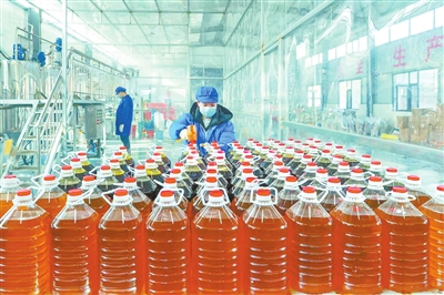 春节临近,食用油迎来销售旺季。屯留区张店镇西沟河村的绛香源食用油加工厂内,工作人员正积极做好生产工作,加紧赶制订单产品,全力以赴保障市场供应。 李红卫 摄