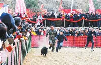 2月10日,平顺县东寺头乡安阳村举办首届抓猪节。作为该县春节系列活动的组成部分,这一活动因趣味性强,吸引了众多游客和村民参与,为平顺文旅注入了新活力。 本报记者 李阳鸿 摄