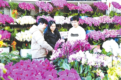 2月13日,潞州区鹿家庄花卉市场,市民们在挑选鲜花。新春将至,我市各花卉基地迎来销售旺季,许多市民前来选购绿植和花卉,迎接新春佳节。