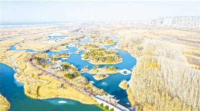 俯瞰漳泽湖,水网如织,栈道如虹。 徐翔 摄