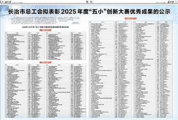 长治市总工会拟表彰2025年度“五小”创新大赛优秀成果的公示