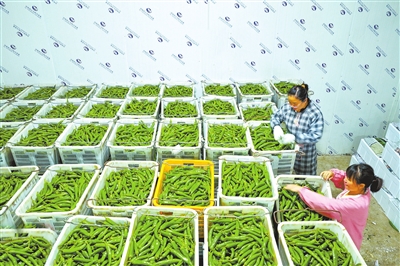 走进宋村镇东郭村的蔬菜交易市场,一片热火朝天的忙碌场面。村民们正将一筐筐青翠欲滴的蔬菜打理整齐,准备发往全国各地。“我们村大力发展设施蔬菜产业,建成蔬菜大棚800余座,年产量超1万吨。同时,建成全县最大的蔬菜交易市场和保鲜冷库,日交易量超400吨。”宋村镇东郭村党支部书记、村委会主任杜旭东告诉记者。