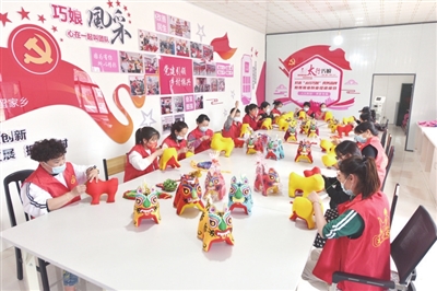 走进黎侯镇七里店村李少敏家,正和几个姐妹缝制黎侯虎的她笑着说:“在家缝缝老虎,一边唠嗑一边做工,在家就能赚钱。农忙了还能帮丈夫种种地,啥也不耽搁,钱也没少挣。”