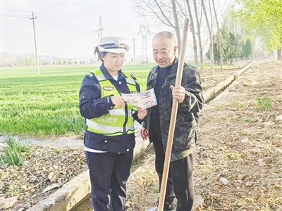 眼下正值春耕时节,田间地头一派繁忙景象。该大队民警走进田间地头,以农村交通事故典型案例为切入点,用通俗易懂的语言,向忙碌春耕的村民剖析农村地区常见的交通违法行为,引导大家自觉遵守交通法规,安全文明出行,做到春耕生产、交通安全“两不误”。
