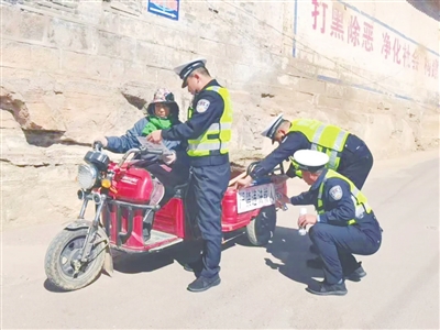 为预防和遏制三轮车违法载人引发的道路交通事故,该大队民警采取“全天候值守、面对面盯防、点对点劝导”的方式,对三轮车违法载人行为进行整治和劝导教育。同时,民警在三轮车车身两侧及车辆尾部等醒目位置喷涂“禁止载人”警示标语,提醒三轮车驾驶人要严格遵守交通法规,拒绝载人上路,安全文明驾驶。