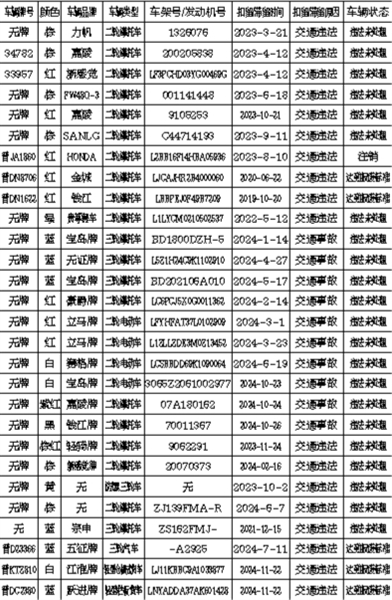 根据《中华人民共和国道路交通安全法》第一百一十二条、《中华人民共和国道路交通安全法实施条例》第一百零七条、《道路交通事故处理程序规定》(公安部第146号令)第五十八条之规定,下列因交通违法或交通事故被公安局交通警察支队依法扣留的车辆,驾驶人、所有人或管理人应自此公告发布之日3个月内,持公安机关交通管理部门强制措施凭证及其他相关手续到扣留车辆的相关交警大队接受处理,逾期不来接受处理的,公安机关交通管理部门将对扣留的车辆依法处理。