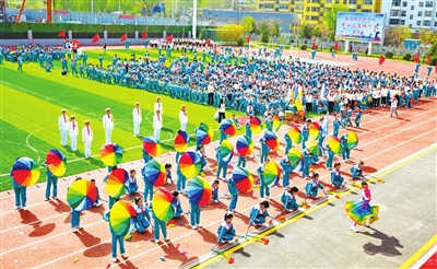 近日,市实验学校第十三届体育节在新落成的现代化校区操场开幕。千余名师生在运动场上开启了一场活力四射的体育竞技,展现新时代青少年的蓬勃朝气与体育精神。 本报记者 梁栋 摄