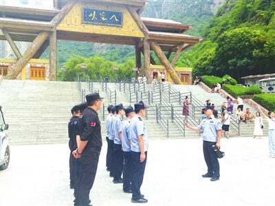 太行深处,重峦叠嶂。4月的一个周末,在山西省长治市壶关县大峡谷镇的八泉峡景区,记者见到了镇派出所所长申飞飞。这天,景区有个文旅活动,游客很多。体格结实的申飞飞身穿警服,戴着党员徽章,正在维持景区秩序,声音略显沙哑。