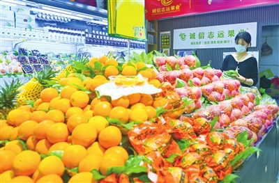 5月15日,在潞州区一家水果店里,柜台上摆满了各种水果。