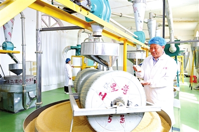 近日,位于武乡县山西三里湾农业科技有限公司园区内一派忙碌景象,员工们专注地加工小米。近年来,该公司建成现代化加工基地,坚持采用传统古法工艺,严格把控每一道工序,致力于加工绿色、健康农产品。