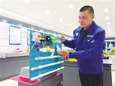 他的提议很快得到集团重视,他兼职矿上“双创基地QC创新小组”副组长,与同事苦心钻研,风控式应急信号照明装置很快研制成功。该装置由自动风控阀、风控驱动器、过滤器、应急控制器、照明切换开关、应急标志灯等部分组成,通过风控驱动器,驱动应急标志灯正常照明,同时通过自动风控阀、过滤器、风控驱动器进行电能补充,即使在特殊状态断开照明的情况下,风控驱动器仍然工作在充电放电状态,以便应急标志灯始终处于饱满的战备状态,从而实现了照明电源断开时能及时切换成风控应急照明和疏散通道指示,达到了持续照明而不间断工作的预期目标。而且它还具有高效节能、耐磨抗腐、风控式驱动安全高效、使用寿命长等优点,可有效提高煤矿整体安全管理水平。目前,该装置已成功申请国家专利,并荣获2024年煤炭行业优秀质量管理小组科技成果一等奖。