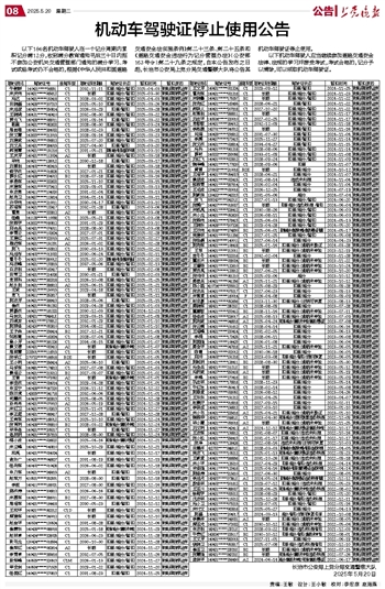 上党晚报 公告 08 2025-05-201 2025年05月20日 星期二