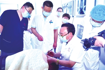 5月19日,针刀医学第一传承人、北京世华针刀中医医院院长葛恒君教授和长治人才集团负责人一行到市中医医院开展交流指导活动。图为葛恒君教授现场进行针刀技术示范,为在场的医务人员带来宝贵的实践经验分享。 马艳霞 李瑶 摄