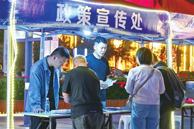 活动现场,多家优质企业整齐“摆摊”,化身热情“摊主”,向过往求职者介绍所需岗位信息。就业岗位涵盖智能制造、电商直播、新能源科技、家政服务等行业领域,共提供就业岗位857个。求职者如同逛街一般,悠然穿梭在各个“摊位”之间,或与“摊主”亲切交流,或驻足仔细查看岗位信息,“人才夜市”氛围轻松惬意。
