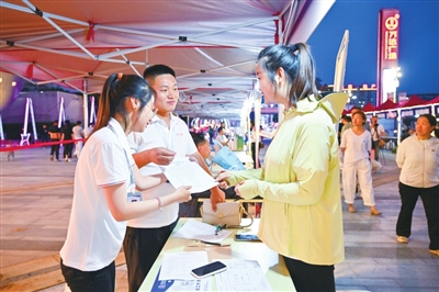在长治立仁咨询有限公司展位前,招聘负责人王爱梅正向求职者介绍岗位要求。问及夜市招聘效果,她指向身边排队的人群:“目前已收到十多份简历,招聘效果很不错,这要感谢人社部门搭建这一平台。”
