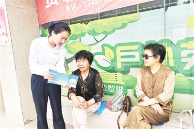 王阿姨住在该支行对面的小区,每天送孙子上学后,总习惯在银行门口的台阶上坐坐。一边晒太阳,一边看手机。每次看到坐在门口的王阿姨,申舒越都会热情地过去打招呼。一来二去,申舒越就和王阿姨成了熟人,于是,在银行门口的台阶上,总会出现这样的场景——银行工作人员在台阶上为老人讲解金融知识,教老人如何用手机查询银行卡余额,为老人提供贴心的金融服务。