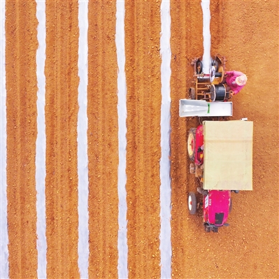 5月20日,在长子县丹朱镇西鲍村田间,村民们正抢抓农时铺设薄膜种植瓜菜。近年来,长子县依托独特的自然条件和产业基础,将瓜菜种植作为乡村振兴的重要抓手,大力发展特色种植产业,让村民走上致富路。
