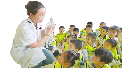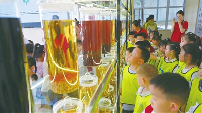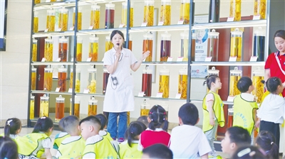 在中药展示区,医馆老师手持苦菜,用生动的语言向孩子们讲解:“古人发现小满时节苦菜生长茂盛,就会采摘食用,既能补充粮食,又能清热祛火。”5岁的朵朵(化名)小心翼翼地尝了尝,举起小手说:“老师,它有点苦,但奶奶说它能打败身体里的‘热气怪兽’!”