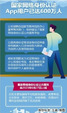 据介绍,国家网络身份认证公共服务自2023年6月27日上线,已在主要互联网平台和政务服务、教育考试、文化旅游、医疗卫生、邮政寄递、交通出行等行业领域开展了试点应用。