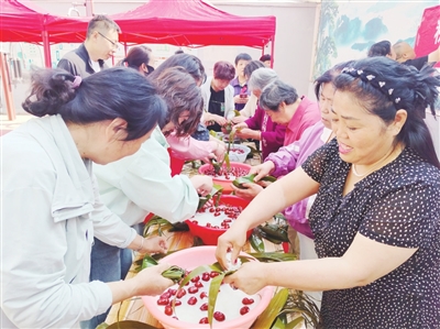 近日,潞州区英雄南路街道梅辉坡社区新时代文明实践站联合长治市祥辰物业管理有限公司走进锦华苑小区,开展“粽叶飘香邻里情,巧手包粽庆端午”系列活动。