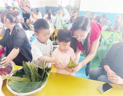 ②潞城区辛安泉镇石梁幼儿园举办“大手拉小手,粽情暖六一”活动。