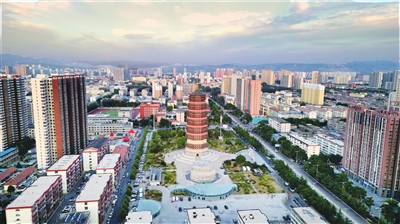 近日,潞州区六府公园的六府塔在夕阳下显得古朴庄重。六府塔作为潞州区的文化地标,它不仅是建筑遗产活态传承的典范,更是镌刻城市记忆的时光印章。漫步公园,凝视六府塔,仿佛能触摸到历史的肌理,感受到传统文化在当代的蓬勃生命力。 本报记者 牛红岩 摄