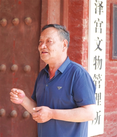 他行走在宫院之中,目光扫过每一处红墙、琉璃瓦、石碑石雕:“每天里里外外要检查一遍,不能有一点脏乱差。”即便如今监控设备已遍布景区,这位老守护者依然坚持着多年雷打不动的习惯:每日两个来回,徒步巡查4公里。三十余载光阴,这双脚已为真泽宫丈量了将近6万公里的路途。
