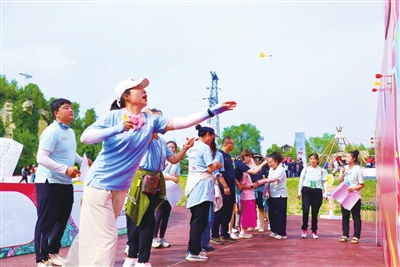 活动现场,参与者们踊跃投身九大趣味健身项目。有人全神贯注掷飞盘,力求精准命中目标;有人在草地上与队友默契配合,尽情挥洒汗水打气排球;还有人围绕九宫格,兴致勃勃地踢球。大家在运动中释放活力,将体育精神与慈善使命融为一体,让运动热情转化为助人力量。