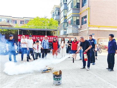 近日,潞州区演武社区联合辖区物业、居民开展消防培训活动,通过实操演示,进一步提高了社区居民消防安全意识与应急处置能力。 英男 摄