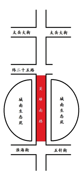 英雄南路(南关十字路口南口至纬二十五路交叉路口北口)、英雄南路与纬二十五路交叉路口西口。