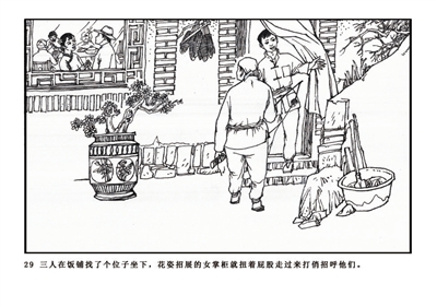 29.三人在饭铺找了个位子坐下,花枝招展的女掌柜就扭着屁股走过来打俏招呼他们。