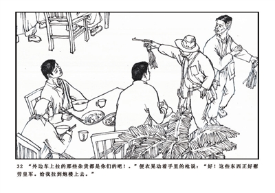 32.“外边车上拉的那些杂货都是你们的吧?”便衣晃动着手里的枪说:“好!这些东西正好慰劳皇军,给我拉到炮楼上去。”