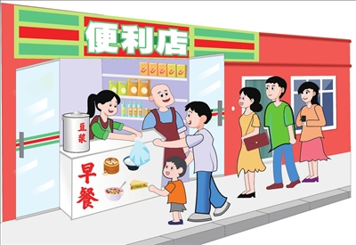 “早上上班时间紧张,去早餐店又来不及,我一般就在楼下便利店买点,加热后拿着就能走,特别方便。”等待店员打包的间隙,张瑞向记者分享。